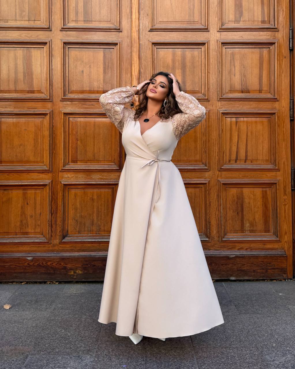 Купить Длинное нарядное платье 05568,14 светлый беж цвет