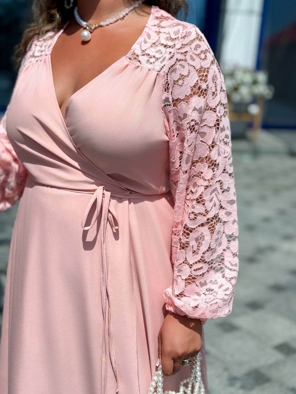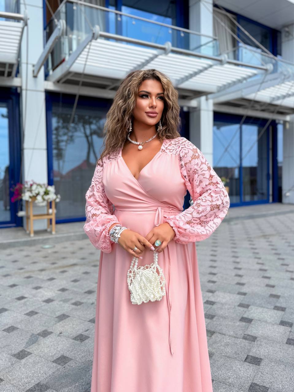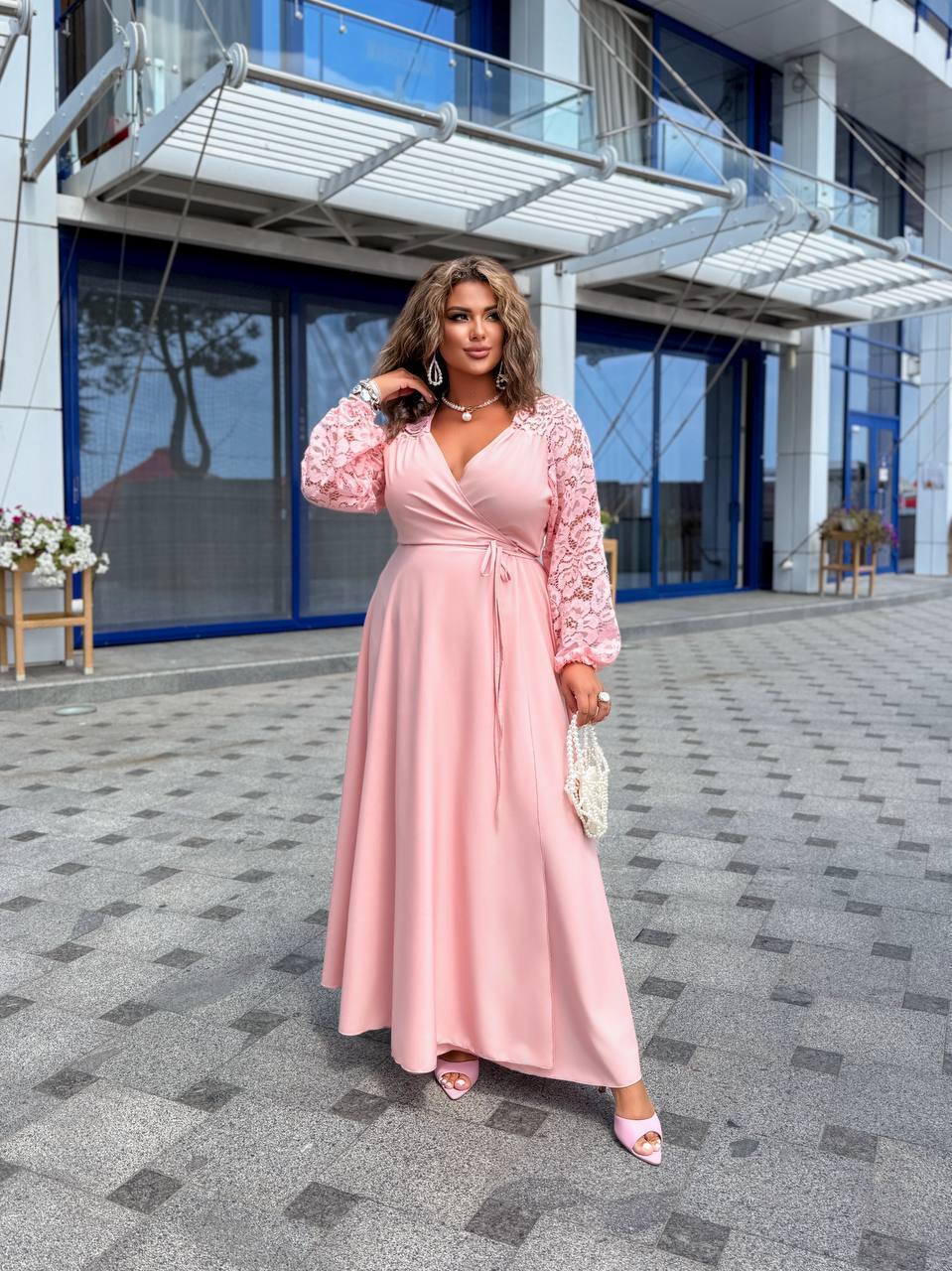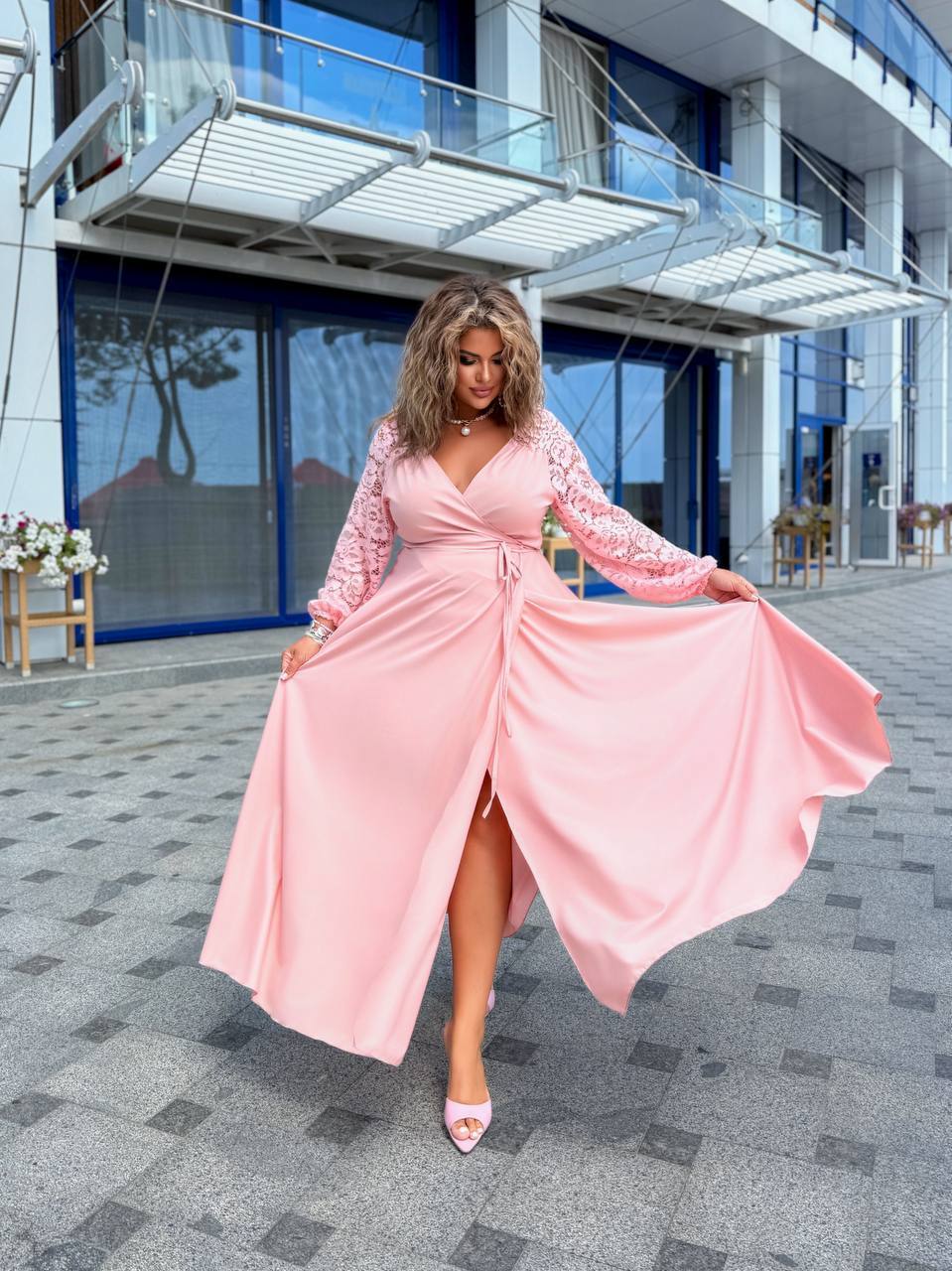 материал: софт шовк, вставки сетки с бархатистым (флоковым) рисунком, одевается на запах. Замеры по изделию: длина 147 см, рукав от плеча 61 см, внизу резиночка: