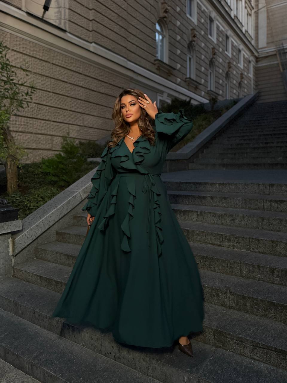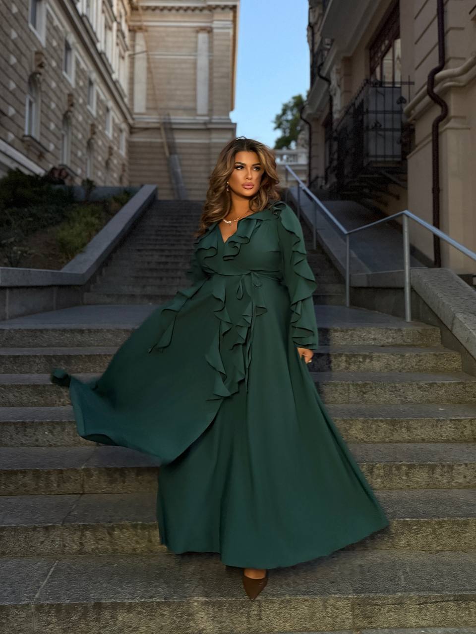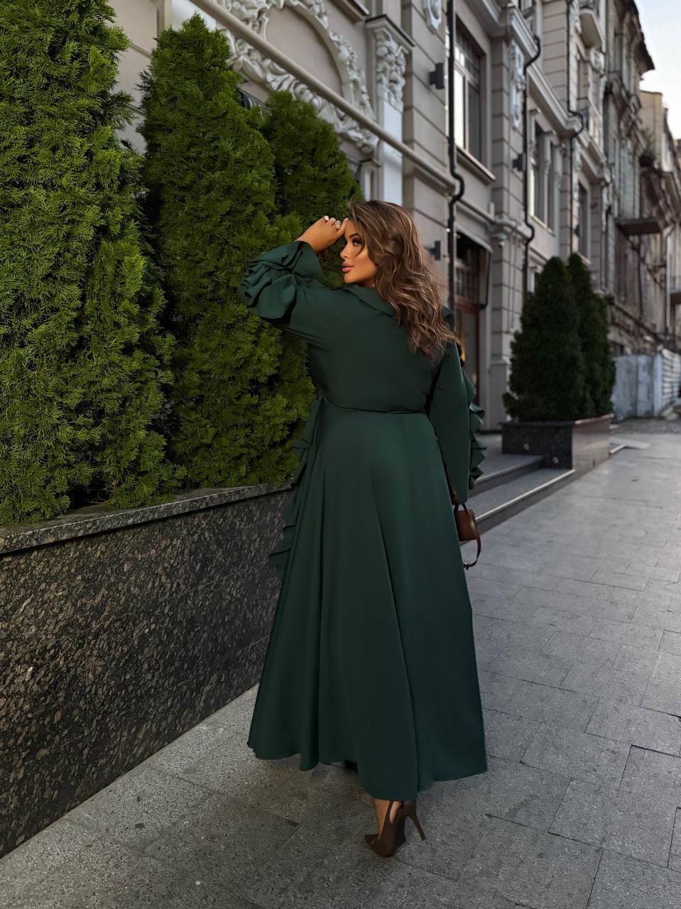 Длинное платье Воланчики с рукавом 8071,11 бутылочный цвет
