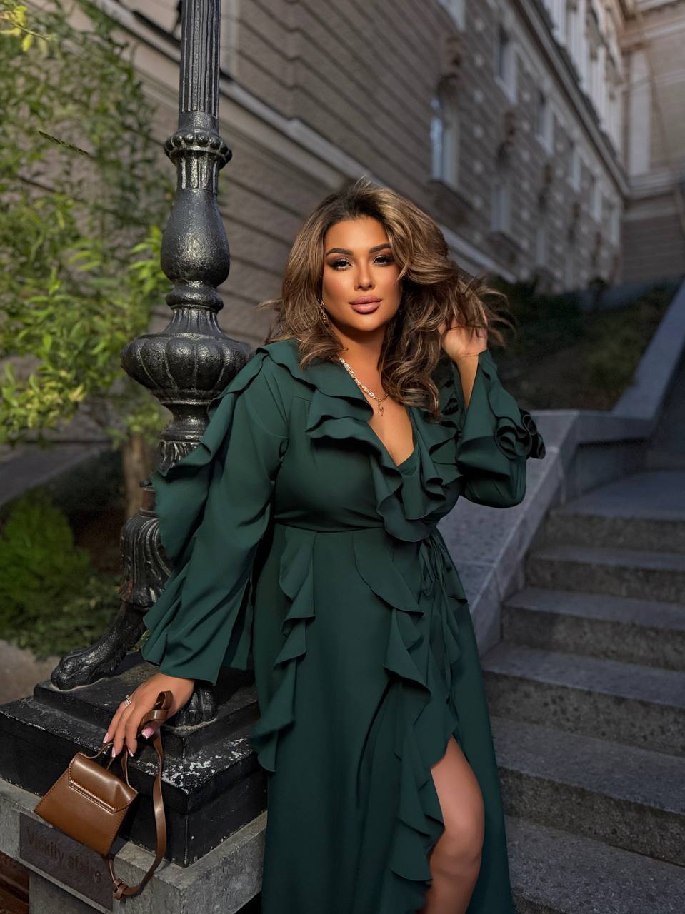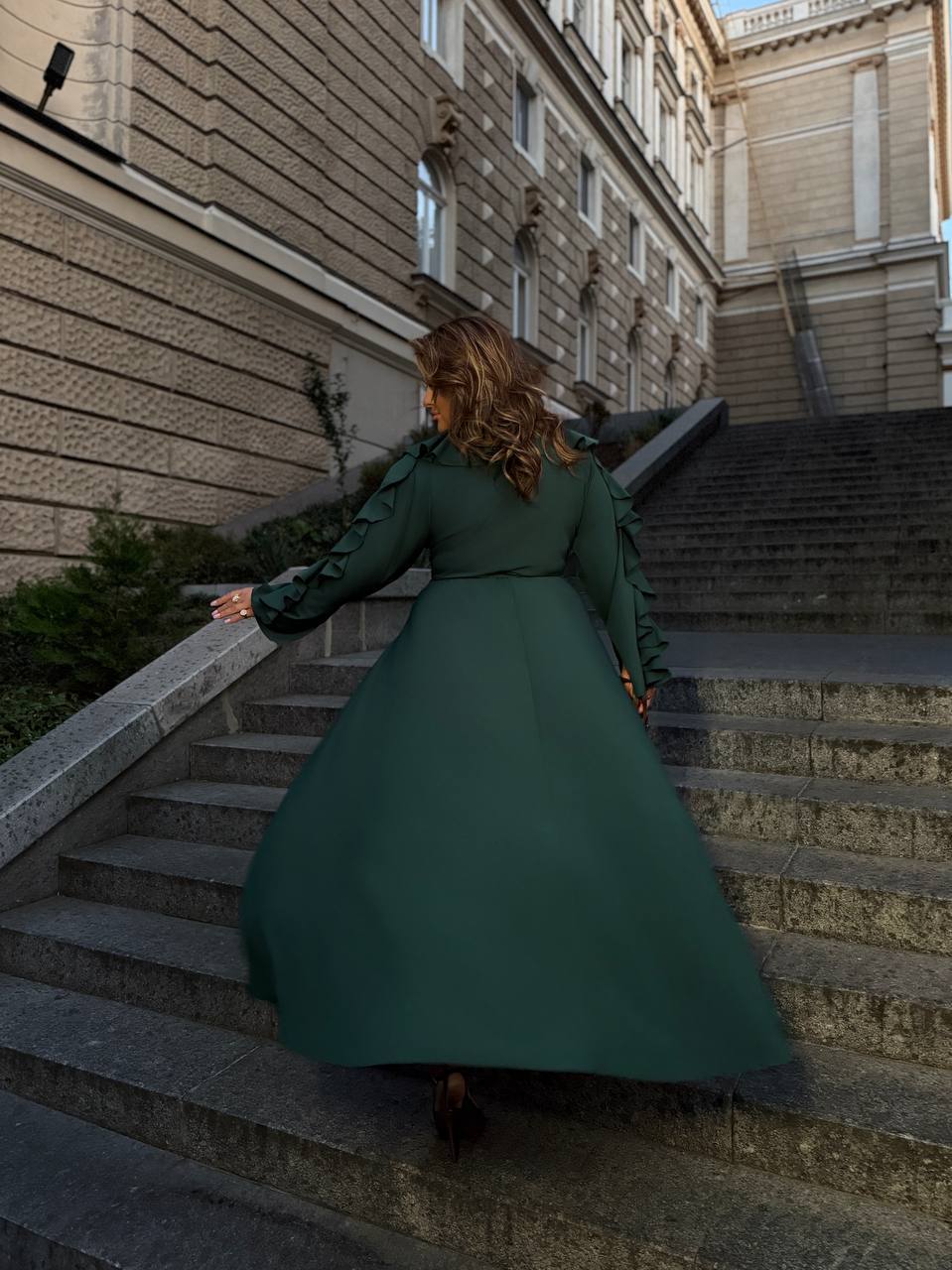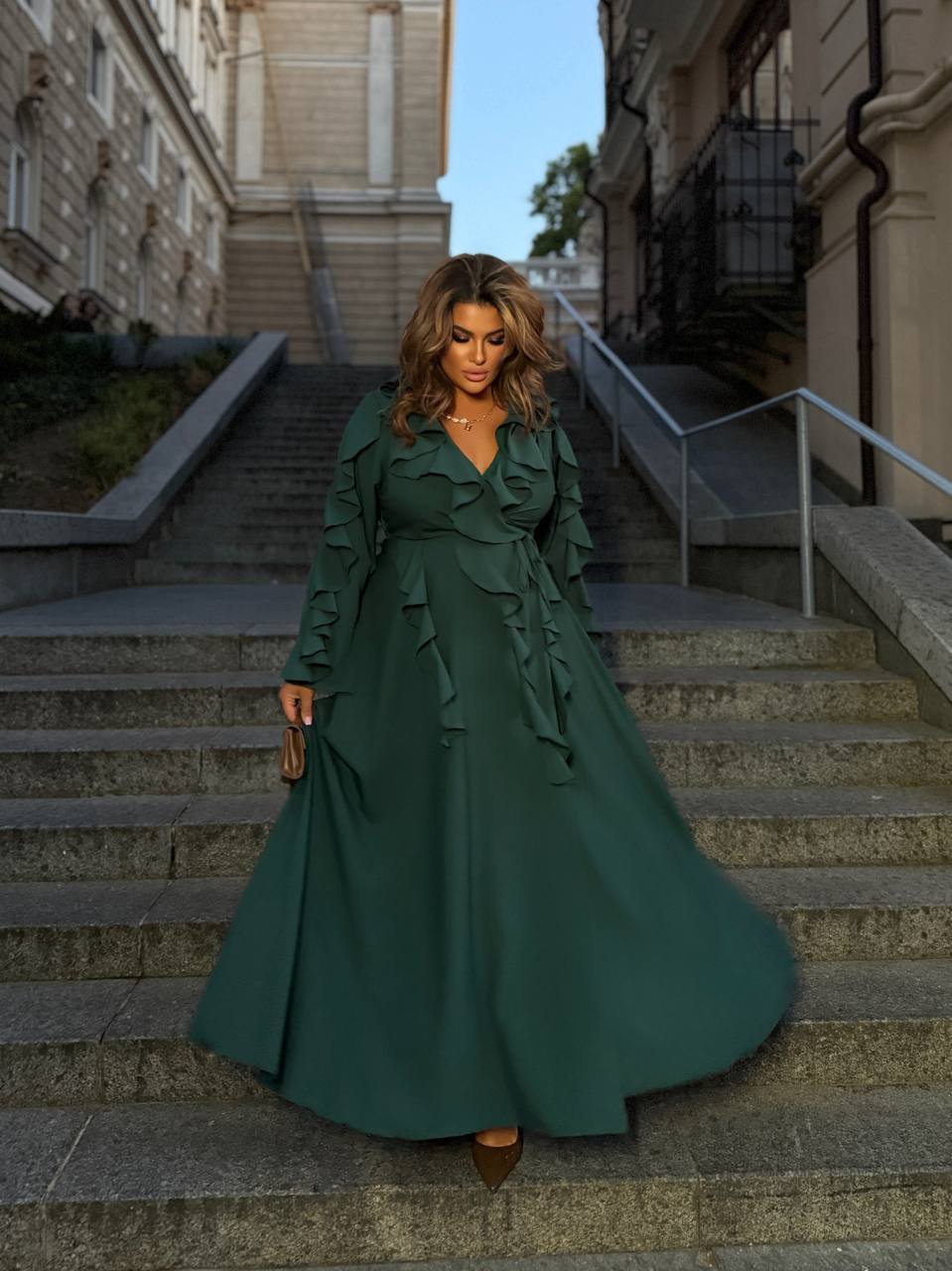 Длинное платье Воланчики с рукавом 8071,11 бутылочный цвет