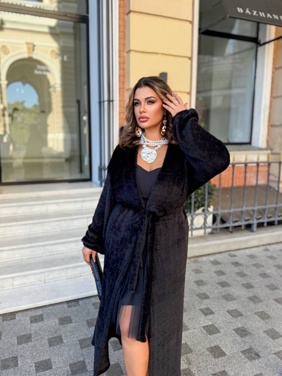 Материал: вязаная ткань с ворсом. Пушистый, мягкий, приятный на ощупь . Теплый.