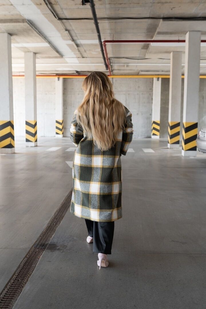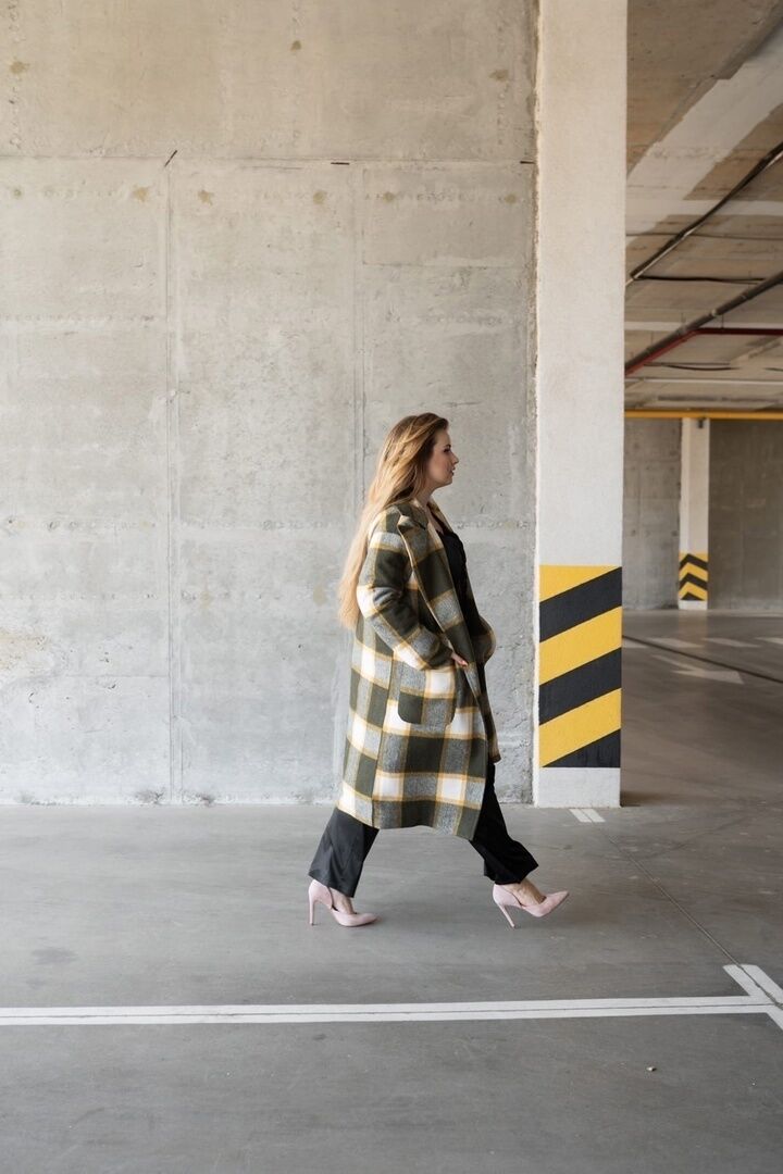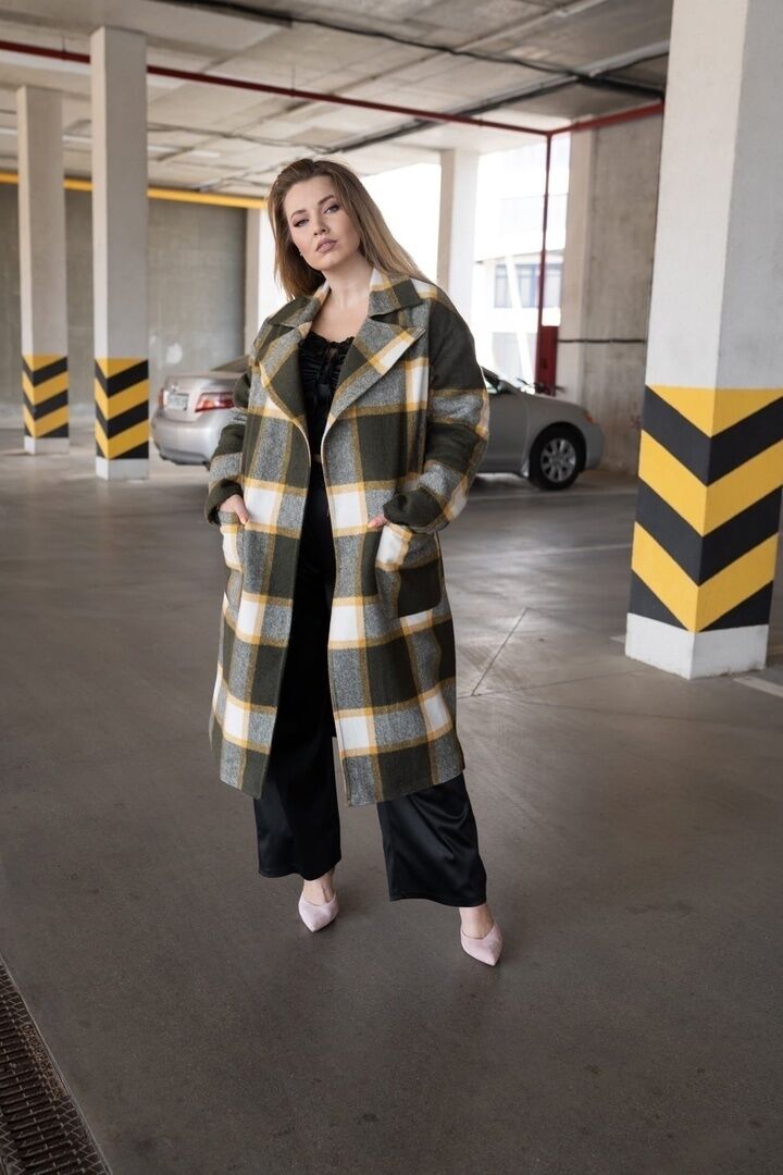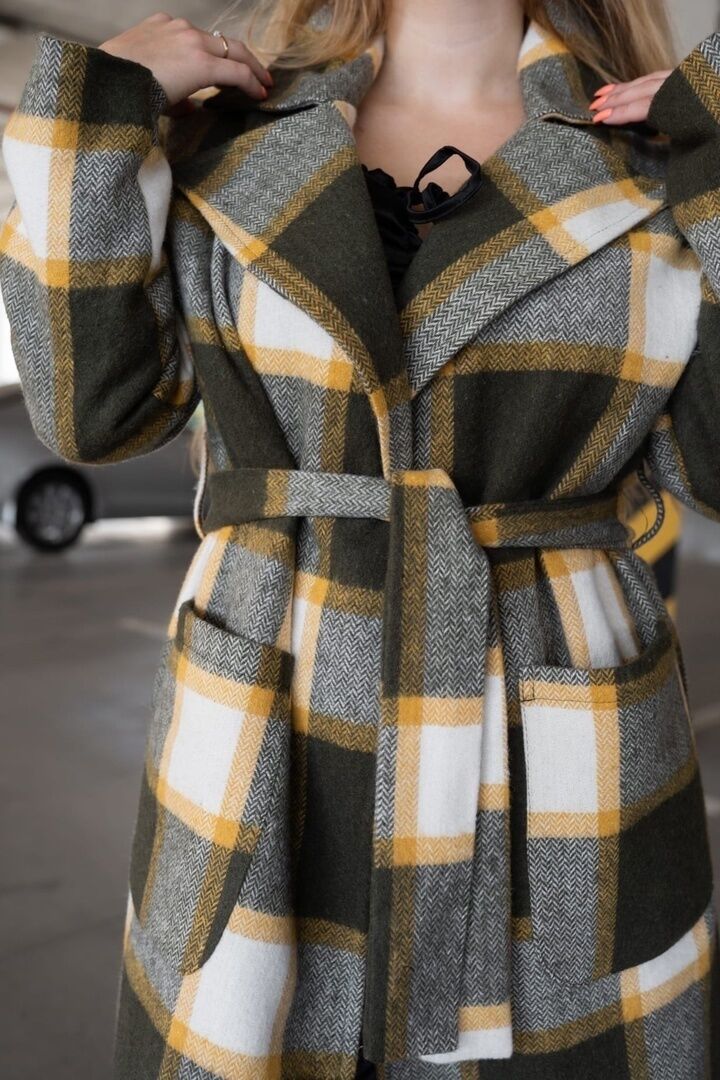 Пальто утепленное Клетка 5673,15 хаки цвет