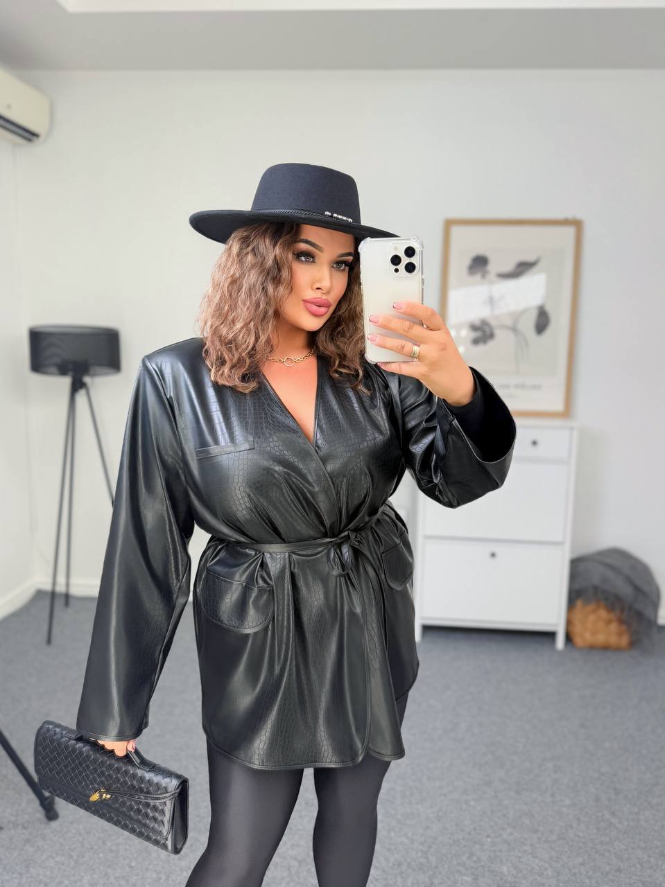 Материал: экокожа с замшевым напилением внутри . Без подкладки. Есть подплечники . Прилагается пояс для создания образов. Длина 80 см.