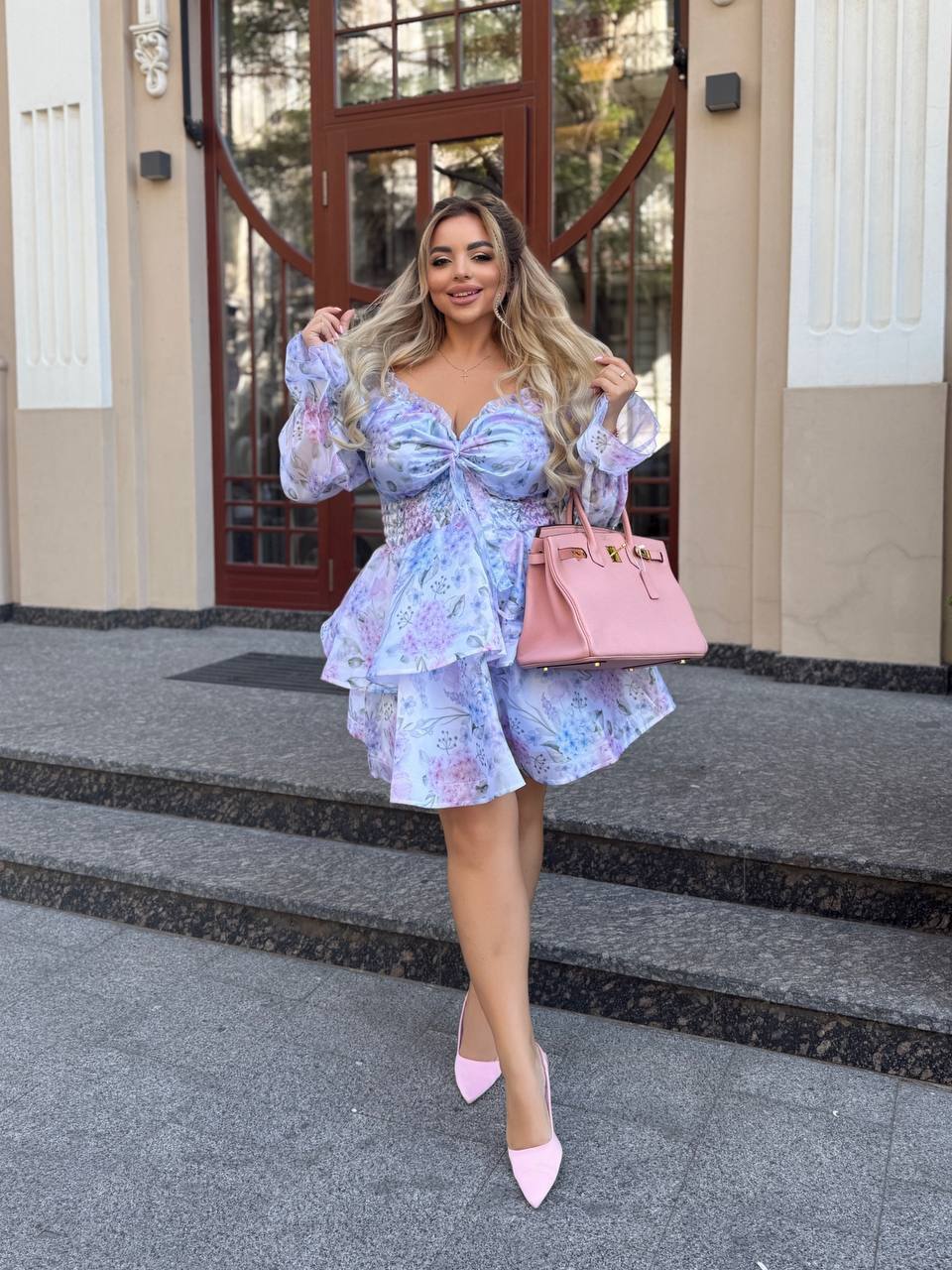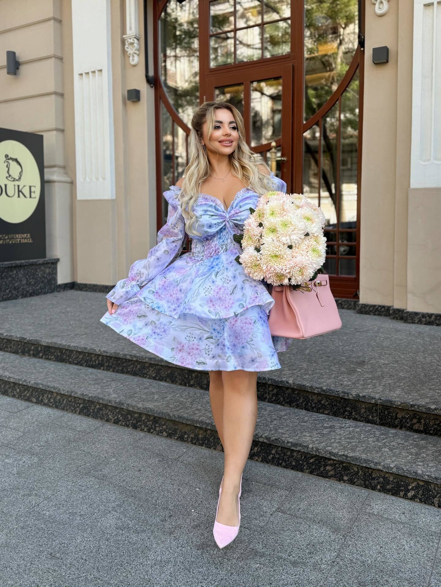 Платье Органза 2 Волана Регилин 7079 голубой цвет