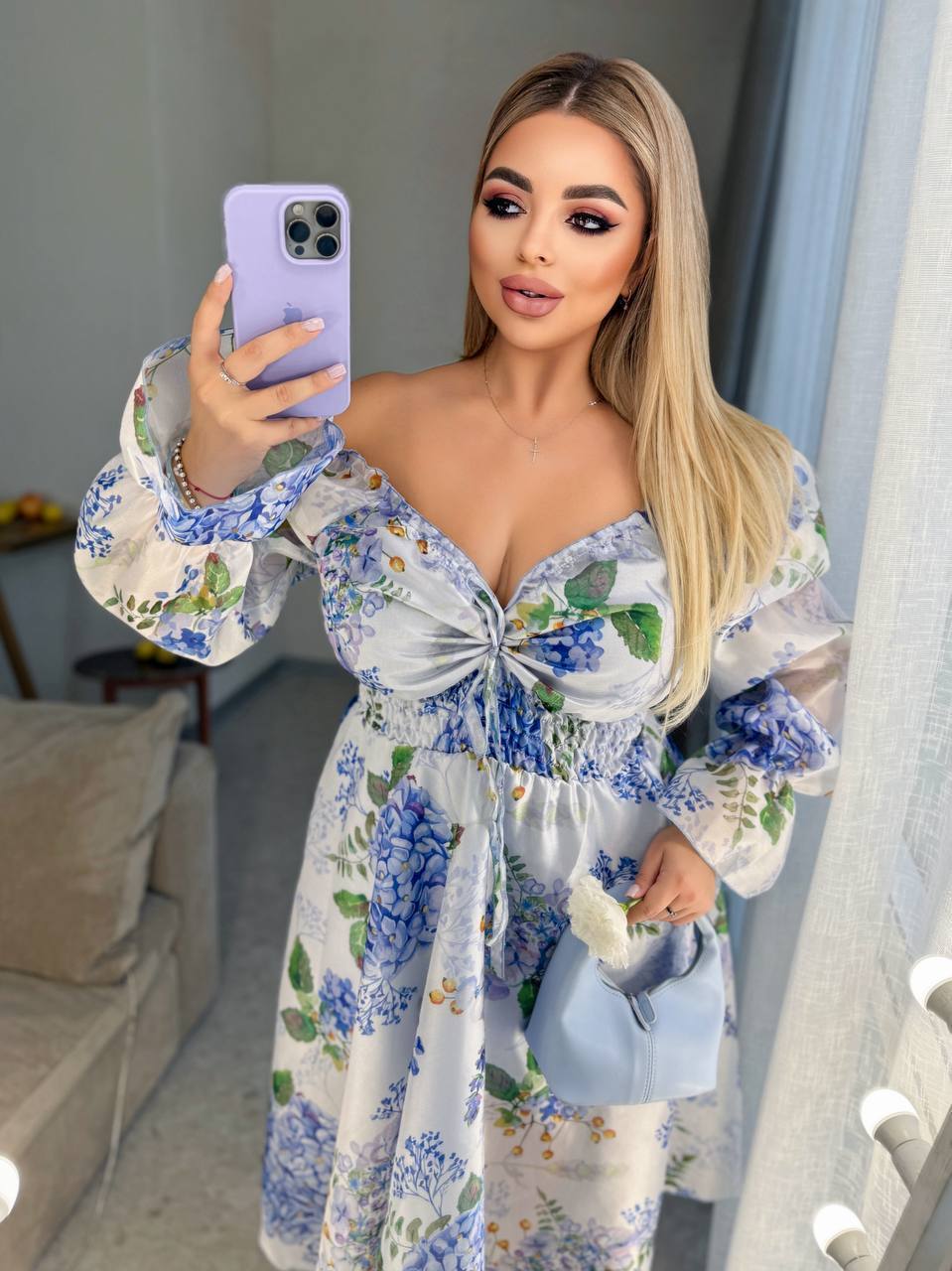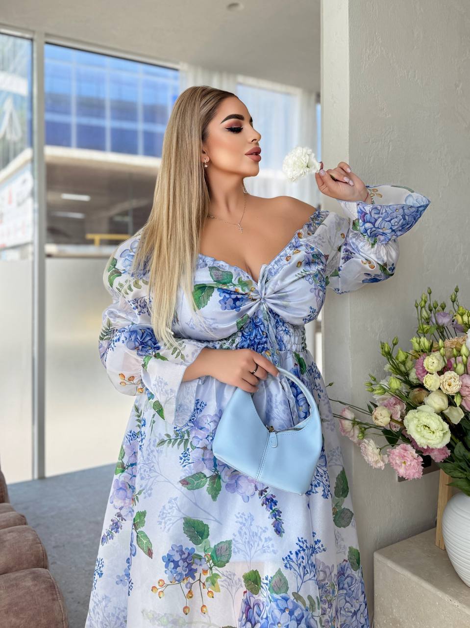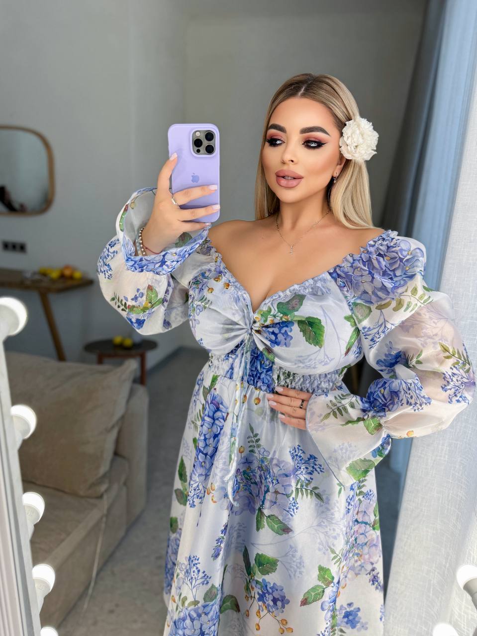 Ткань : органза Принт турецкого производства. Подкладка – софт-шелк. Талия на резинке мягко садится по фигуре.