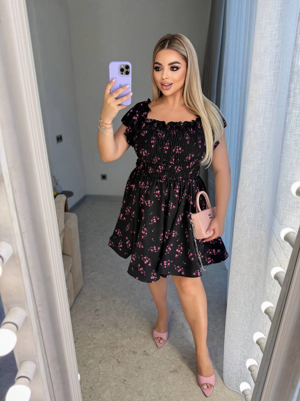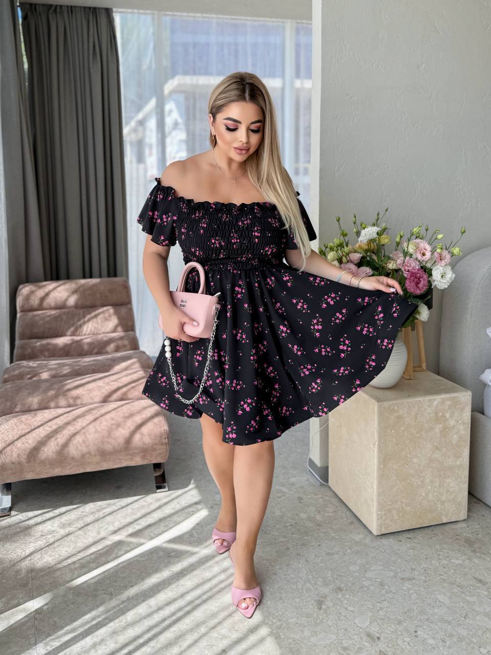 Материал: софт-шелк. мало мнущаяся ткань. Низ юбки платья уплотнен ригалином, что придает форму и образует очаровательный образ. Платье прошито резинками, которые мягко тянутся, что позволяет красиво сесть на фигуру и чувствовать себя комфортно