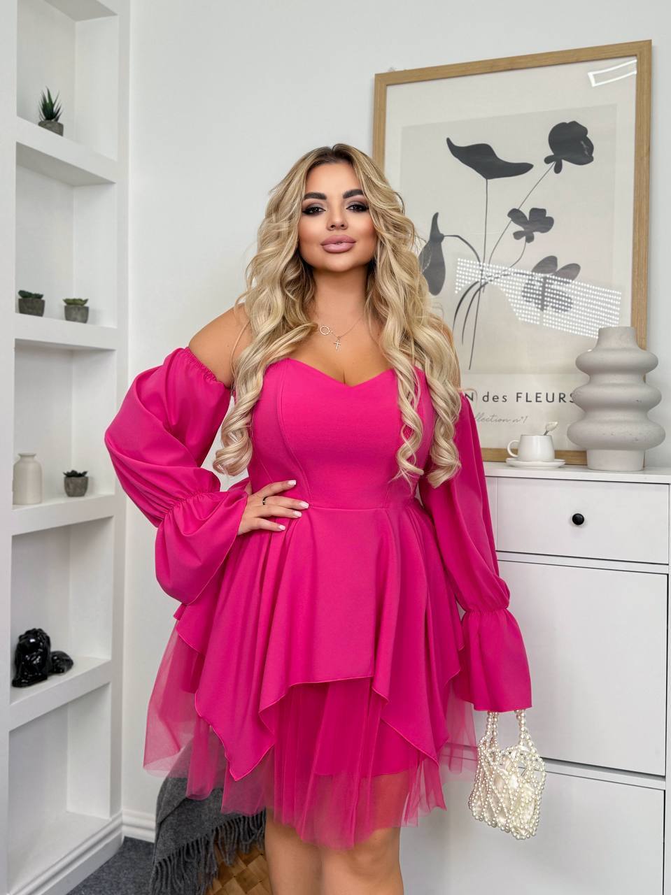 Материал: софт-шелк. Корсет укреплен тканевым флизелином и прошит косточками по рельефу. Юбка - евро сетка с подкладкой из софта. Платье состоит из двух деталей: юбки и корсета, который можно носить отдельно (под лосины, шорты и т.д.). Есть съемные рукава. Сзади корсета - мягкие резинки, с помощью которых изделие хорошо сидит на фигуре и не сковывает движения.