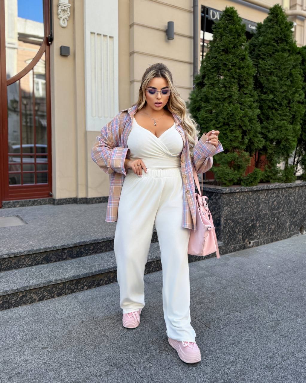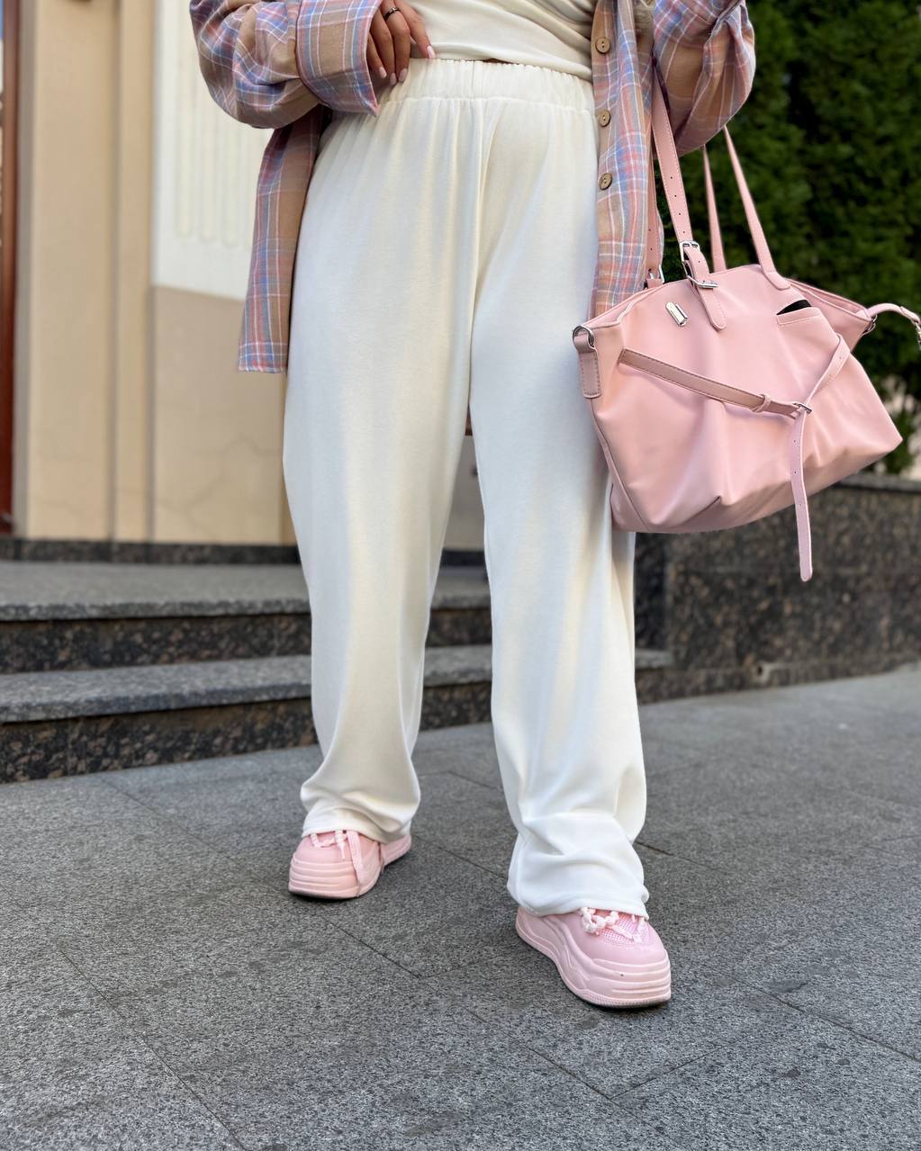 Матеріал : бавовняний велюр-спорт - приємний, гарно носиться ,виробництва Туреччина , висока якість. Не мнеться . Брюки високої посадки , талія на резинці, кишені. Довжина брюк 79/110. Заміри по виробу: