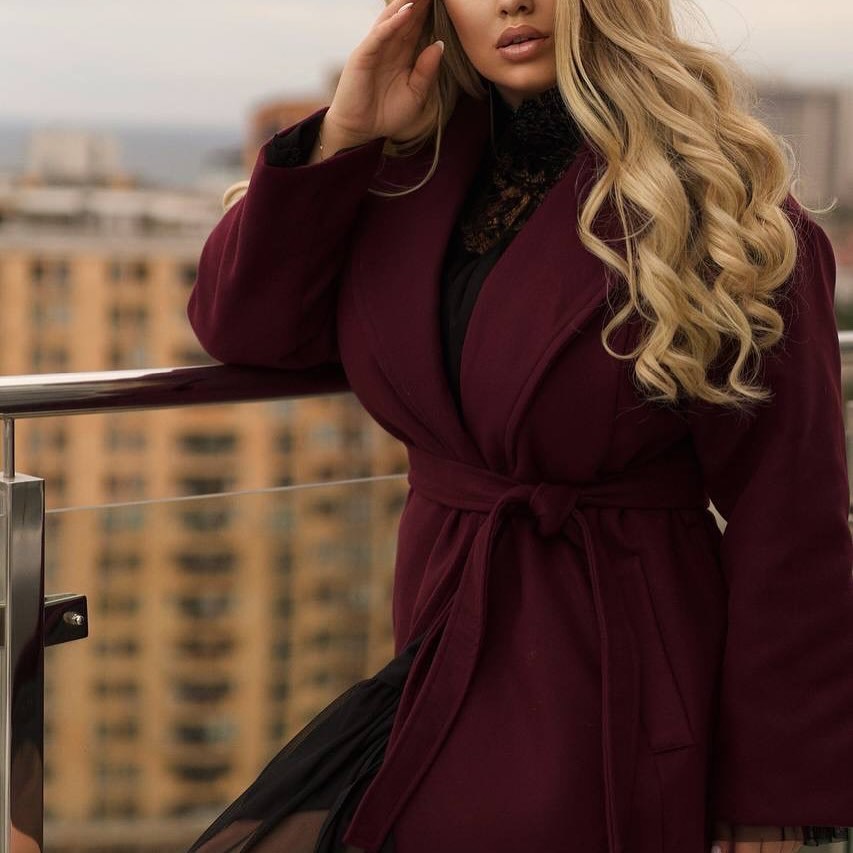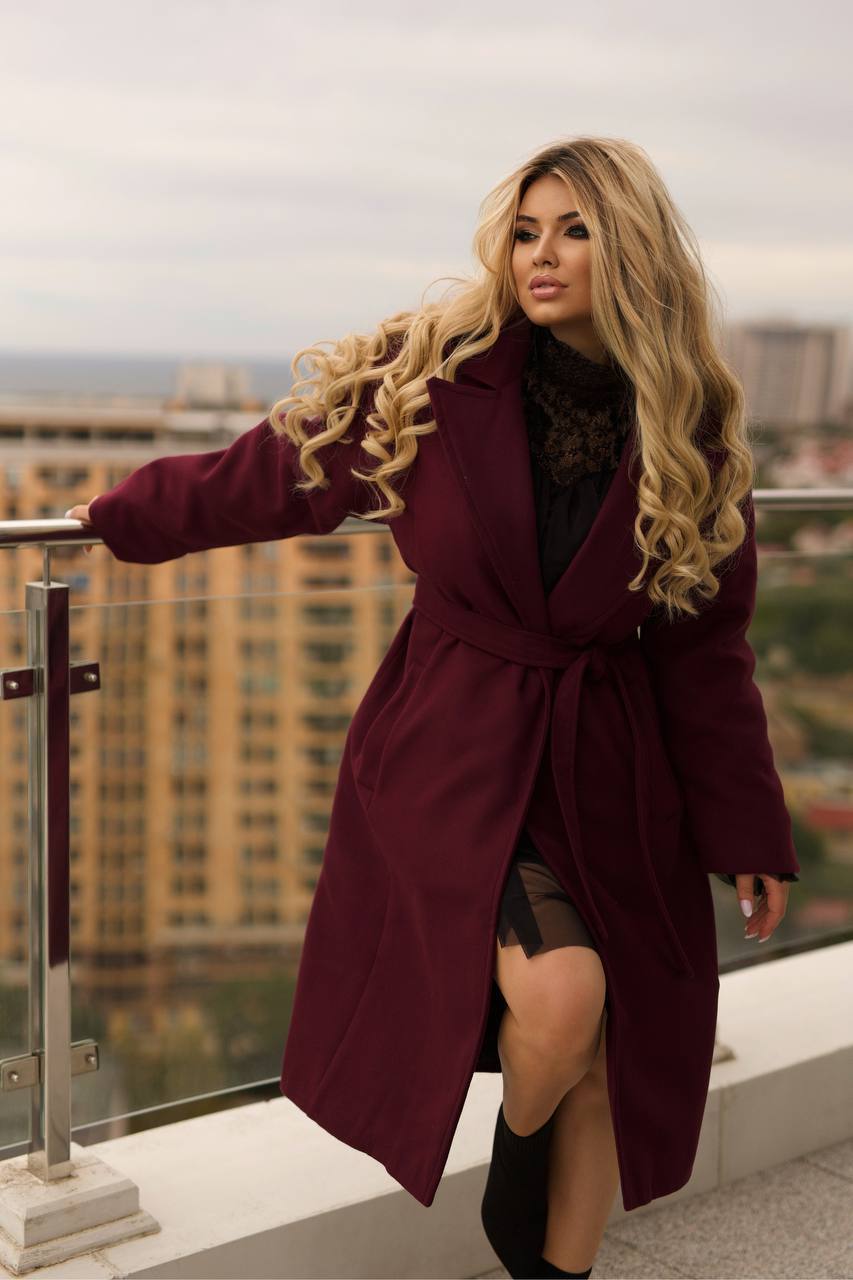 Кашемирове утеплене пальто 5352,6 бордо колір