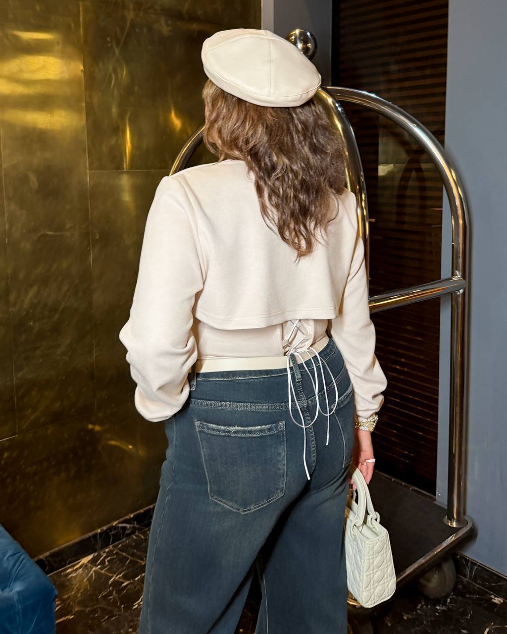Материал: замша на плотной стрейчевой основе. Застегивается спереди на липучке. Идеально подходит для создания образов. Длина по спинке 37 см, по переду 23 см.