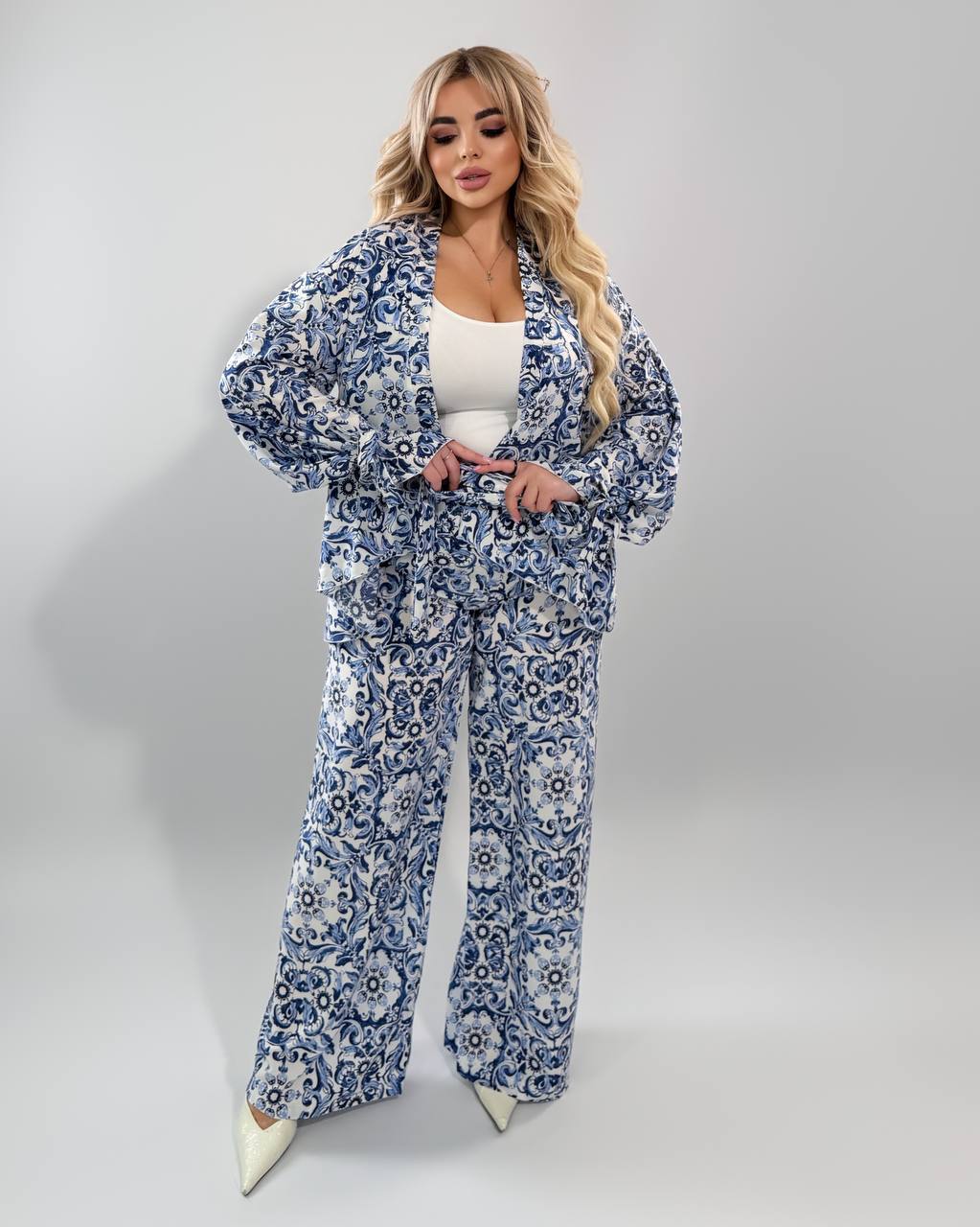 Брючный костюм Двойка 7161,28 голубой цвет