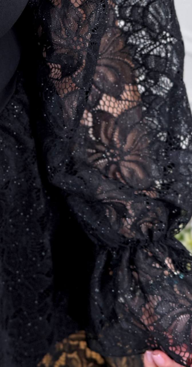 Плотное кружево с легким блеском — акцент, от которого невозможно оторвать взгляд