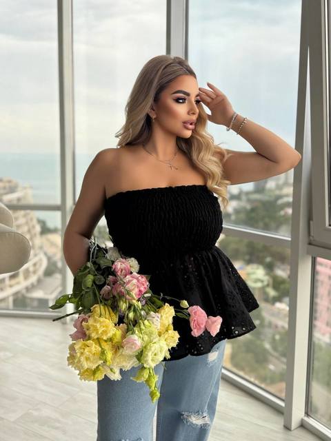 Матеріал: Бавовна з вишивкою та перфорацією (натуральна, якісна тканина). Спідниця і перед на підкладці з батисту (теж натуральна тканина). Низ сукні ущилен Регаліном, що придає форму і утворює чарівний образ. Сукня прошита гумками, які мʼяко тягнуться, що дозволяє гарно сісти по фігурі і відчувати себе комфортно . Рукава можна знімати і одягати . Ця модель - незамінна річ в літній шафі. Можна носити як цілий образ. А можна - окремо спідницю, топ і топ з рукавами.